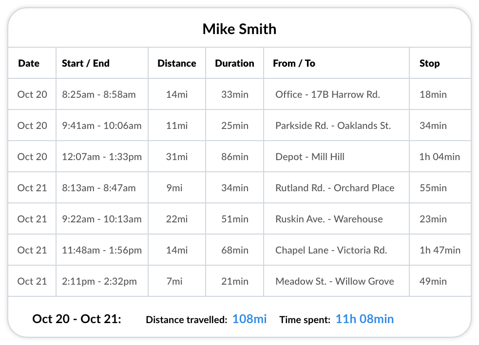 Hellotracks registra automáticamente la hora exacta cuando los empleados llegan y salen de un lugar de trabajo. Esta función de seguimiento GPS mejora el rendimiento del personal y aumenta la eficiencia de todo el equipo.